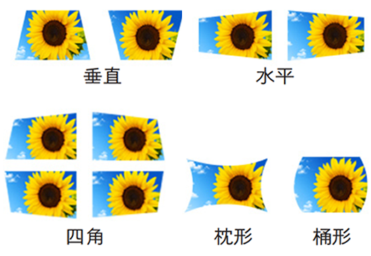 水平/垂直梯形校正+六角校正+枕形/桶形失真校正+多点梯形校正的强力组合,调整操作简便,确保用户在各类不规则的投影面都能取得高保真的成像效果。